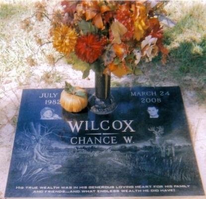This memorial website was created to remember our dearest Chance Wayne Wilcox who was born to Shelli Ralls and Butch Wilcox, in Tomball, Texas, at 2:17 pm on July 19, 1982 and went with our LORD at 8:30 pm on March 24, 2008, due to a tragic auto accident, caused by a habitual reckless/distracted driver, who's distraction was her cell phone. This then caused the truck, he was a passenger in, to rollover and he was ejected. This was such an unnecessary and preventable tragedy. He will live forever in our memories and hearts. You are our beloved Son, Brother, Grandson, Uncle, Nephew, Cousin and Friend.